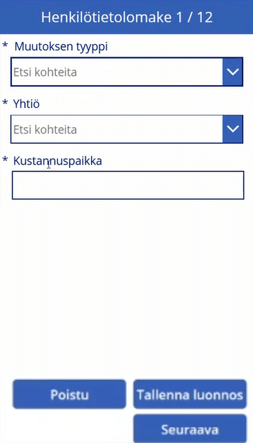 As the basic functionalities of simple functions are developed, the processing of appearance aspects is significantly reduced in time. When Power Apps produces data for the application screen, the developer needs to make small visual changes. In addition to that, of course, some actions are taken if, for example, you want to display additional fields at some point as the form filling progresses to later stages.