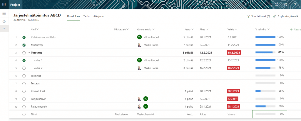 Projektinhallinta osaksi Microsoft 365 -palveluja