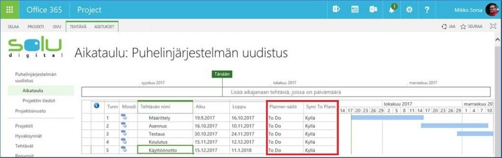 Project Onlinen ja Plannerin yhteiskäyttö