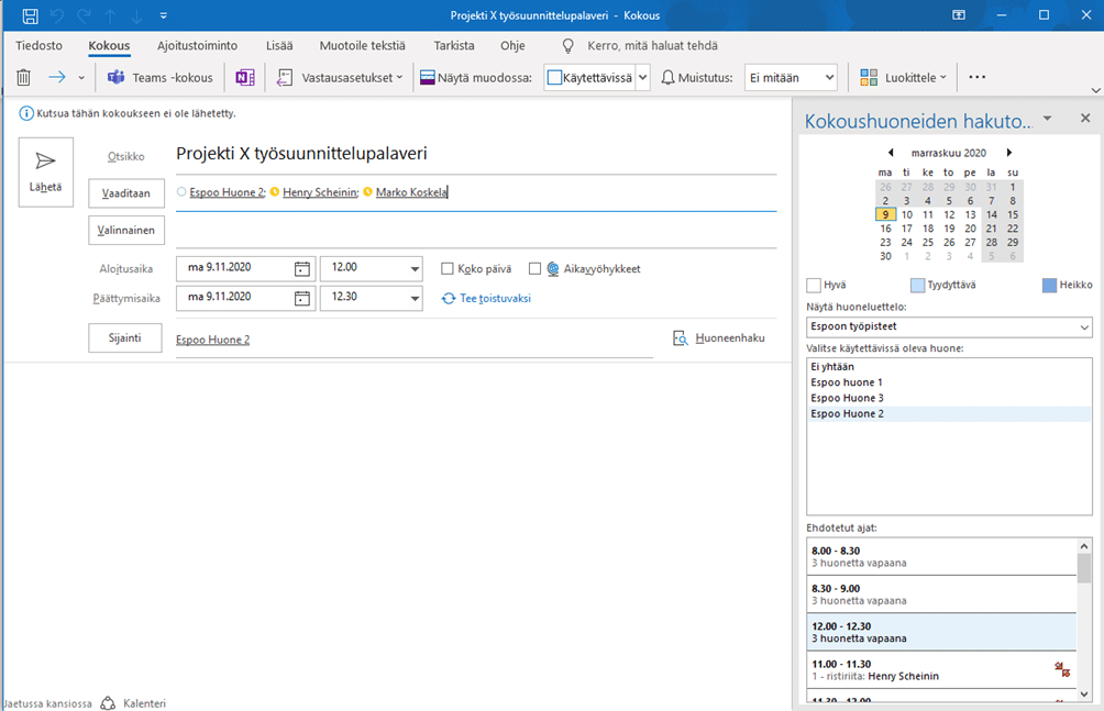 Työpisteiden helppo varaus Outlookilla